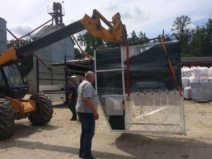 Завантаження в машину проводиться норією, а оброблене зерно з лотків відводиться в приймальні бункери або на транспортерні стрічки. Відпрацьоване повітря, що містить пил і легкий сміття, можна вивести з машини на вулицю за допомогою воздуховода або подати на очистку в циклон або камеру аспірації.