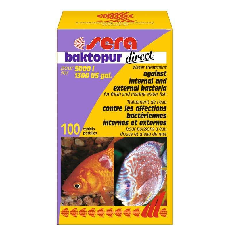 Кондиціонер для води Sera Baktopur Direct - це високоефективний засіб проти бактеріальних інфекцій риб, що мешкають як в прісноводних, так і в морських акваріумах. Головною перевагою препарату є його швидка дія навіть на пізніх стадіях захворювання риб, таких як: калумнаріоз, плавникова гниль, зяброва гниль, інфекції, викликані бактеріями Aeromonas або Pseudomonas, запалення та відкриті виразки, а також водянка. Застосовуючи цей препарат для води в своєму акваріумі, ви гарантуєте своїм рибам міцне здоров'я та прекрасне самопочуття!