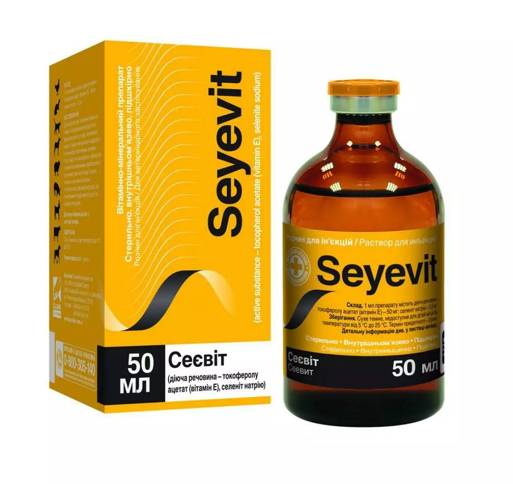 Сеєвіт – це водорозчинний комплекс вітаміну Е та селену, який поповнює організм тварин та птиці вітаміном Е та селеном.