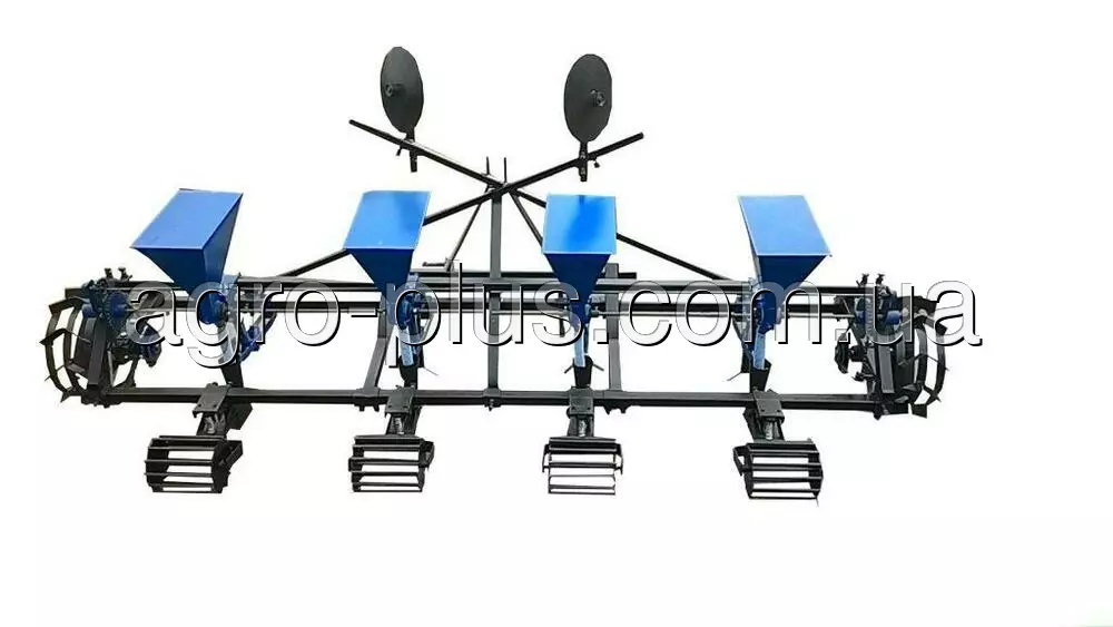 Конструкция овощной 4х рядной сеялки для минитрактора позволяет регулировать глубину высева, шаг посадки в ряду и ширину междурядий. Необходимые технические данные указаны в таблице №1. Возможна дополнительная комплектация маркером.