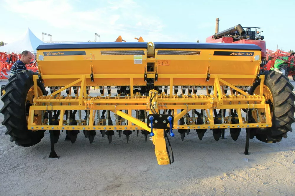 Купить сеялку универсальную Planter 3.6-02 М от производителяPlanter 3.6М – зерновая сеялка, разработанная для рядового посева семян зерновых (пшеница, рожь, ячмень, овес), зернобобовых культур (горох, фасоль, соя, чечевица, бобы, чина, нут, люпин), мелко семенных культур (люцерна, рапс, просо, клевер) с одновременным внесением минеральных удобрений.Преимущества сеялки СЗМ 3.6:СошникДиски сошника изготовлены из борированной стали толщиной 3 мм, после соответствующей термообработки значительно повышает выносливость и увеличивает ресурс работы сеялки. Сошник обеспечивает разрезания пожнивных остатков и углубление дисков на заданную глубину, что значительно улучшает равномерность всходов. На сеялке установлены поводки сошников трубных конструкций, обеспечивающих парное позиционирования сошников по продольному и горизонтальному расположению. Штанги крепления сошников изготовлены из металлопроката круглого (более жесткого) пересечения с шарнирными соединениями регулирования давления на грунт и шарнирными соединениями, обеспечивает их надежность. Высевающий аппаратНа сеялке установлены полимерные высевающие аппараты с приводом катушек шестигранным валом, который установлен на подшипниковых узлах. За счет универсального высевающего аппарата, имеет две катушки, можно высевать как обычные зерновые культуры, так и мелко семенные, то есть в этом случае исчезает необходимость изменения сеялки под тип СЗТ (зернотукотравьяна). Туковисиваючи аппараты – с одной катушкой с аналогичными приводами и заслонкой. Моторесурс этих высевающих аппаратов в 50000 моточасов. Высевающий ящик и рамаВысевающий ящик увеличен до 1000 дм3, что позволяет уменьшить количество остановок для загрузки агрегата. Рама сеялки имеет усиленную конструкцию, что делает невозможным деформацию и разрушение.  ВариаторСеялка с применением указанных высевающих аппаратов комплектуется механизмами бесступенчатого регулирования передаточных отношений привода аппаратов (вариатор), что позволяет более точно установить норму высева. Имеют также моторесурс 50000 моточасов. ПружинаНа штанге амортизатора установлена ​​усиленная пружина, значительно увеличивает давление на сошник. Это позволяет работать по минимальной технологии обработки почвы.Прикатывающие колеса Дополнительно сеялка может комплектоваться прикатывающими колесами, обеспечивает уплотнение почвы и равномерность посева на заданную глубину, как следствие равномерность всходов. КраскаПри покраске сеялок используется высокотехнологичное оборудование и краски итальянского производителя Roberlo, которые гарантированно защищают металл более 10 лет, что соответствует сертификатам качества ISO. С помощью окрасочного оборудования welcome мы можем сохранять постоянное качество покраски и толщину лакокрасочного слоя гарантирует эстетичный вид. Система контроля высева семянДополнительно сеялки комплектуются системой контроля высева семян, максимально автоматизирует процесс эксплуатации агрегата. Основные технические характеристикиХарактеристикиЕДН. Измер