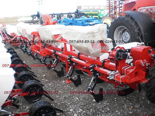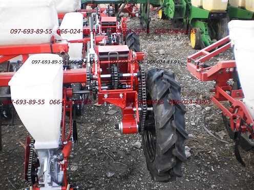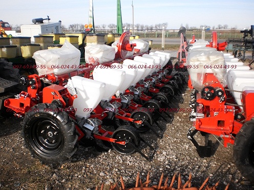 Пневматична сівалка точного висіву УПС 8 з посівною секцією оснащеної 2-х контурним приводом нової конструкції, яка в місці із захисним щитком запобігає забиванню ланцюгів приводу, призначені для пунктирного висівання каліброваного і некаліброваного насіння ( в такому випадку точність буде прямо залежати від величини в розмірах і ступеня пошкодженості посівного матеріалу ) кукурудзи, соняшнику, рицини, сор кормових бобів, квасолі, люпину з одночасним, роздільним від насіння внесенням гранульованих мінеральних добрив та прикочуванням ґрунту в рядках. nbsp; Вали приводу зернових та тукових висівних апаратів змонтовані на підшипниках кочення. Протектор з ґрунтозачепами на шинах опорно-привідних коліс знижує їх прослизання, що видно сліду. Комплектація сівалки транспортним пристроєм. Вентилятор забезпечений обгінною муфтою. Висіваючий апарат виробляє точний посів насіння з нормою висіву від 2 до 43 штук на погонний метр. Технічна характеристика сівалки УПС 8