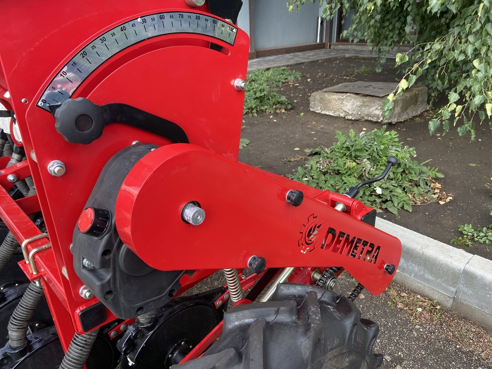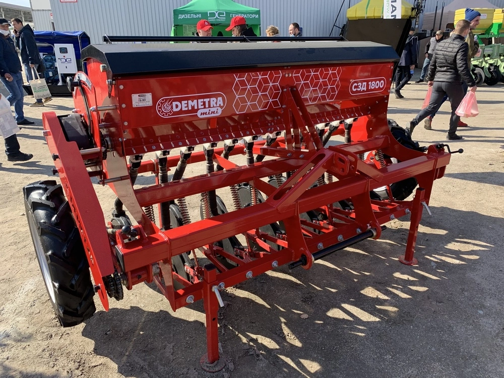 Сівалка зернотукова " ДЕМЕТРА МІНІ" 1800V, безступінчастою коробкою передач (варіатор), призначена для рядового посіву зернових культур (пшениці, ячменю, жита, вівса), зернобобових (соя, горох, квасоля, нут, сочевиця, боби), дрібн , гірчиця, льон) сипучого та середньо сипучого насіння трав з одночасним внесенням мінеральних добрив.