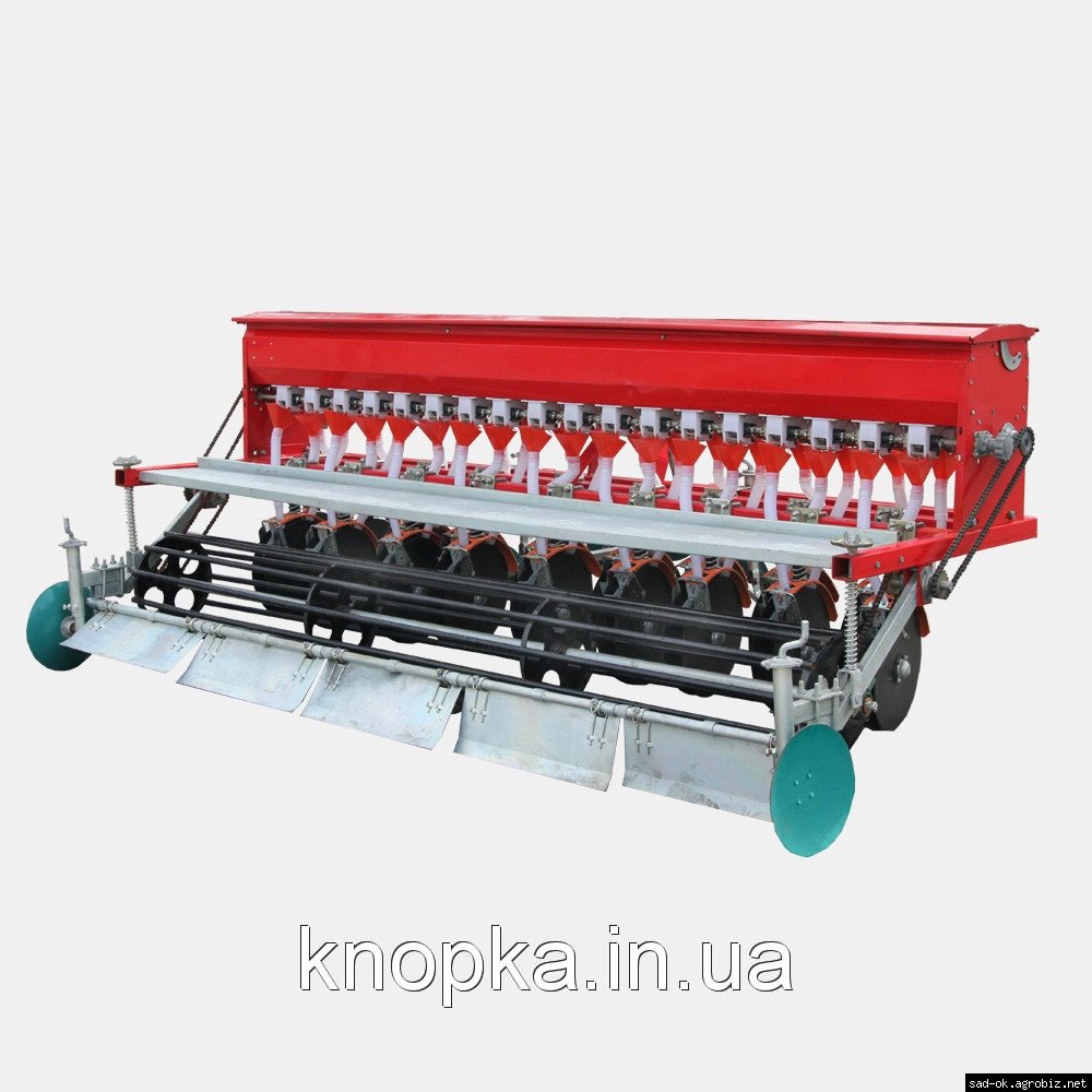 Сеялка зернотуковая 10-ти и 12-ти рядная предназначена для посева семян зерновых культур (пшеница, рожь, ячмень, овес), бобовых культур (горох, фасоль, соя, чечевица, бобы) и льна с одновременным внесением в засеваемые рядки гранулированных минеральных удобрений. Сеялка может быть использована для посева семян других культур, близких к зерновым по размерам семян и нормам высева (гречиха, просо, сорго).