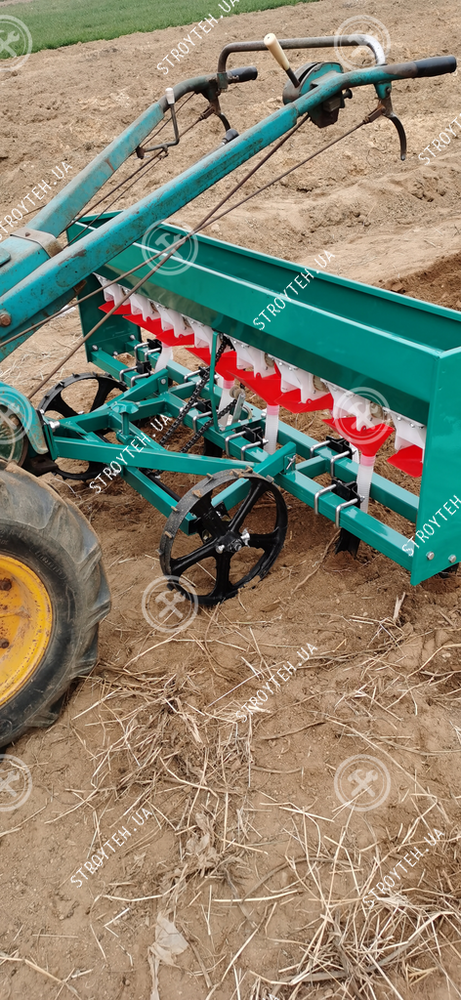 Сеялка зерновая SD-8 восьмирядная, без ящика для удобрений Forte Сеялка зерновая SD-8 Forte, предназначена для высева семян зерновых культур и используется в мотоблоках мощностью от 6 л.с. С помощью сеялки можно высадить овес, горох, пшеницу, ячмень, рожь, гречку, просо и другие культуры. Ширину между рядками и глубину посадки можно регулировать.