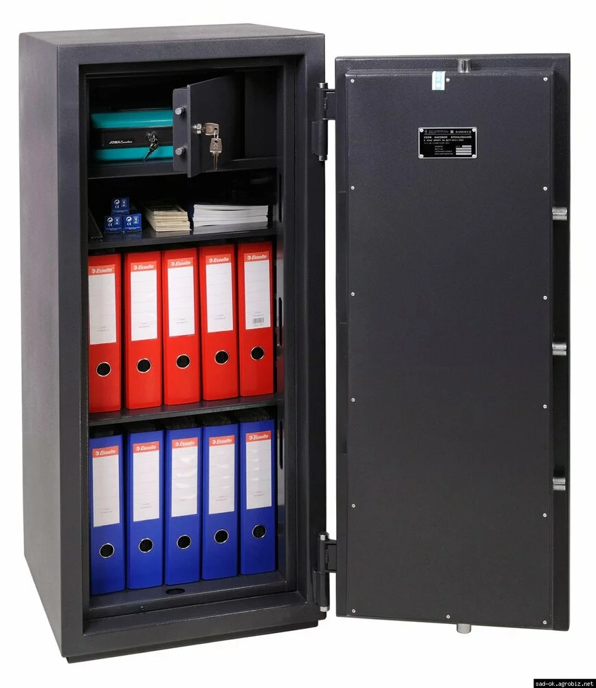 Размеры сейфа позволяют хранить документы формата А4, папки канцелярские, а также папки регистраторы.