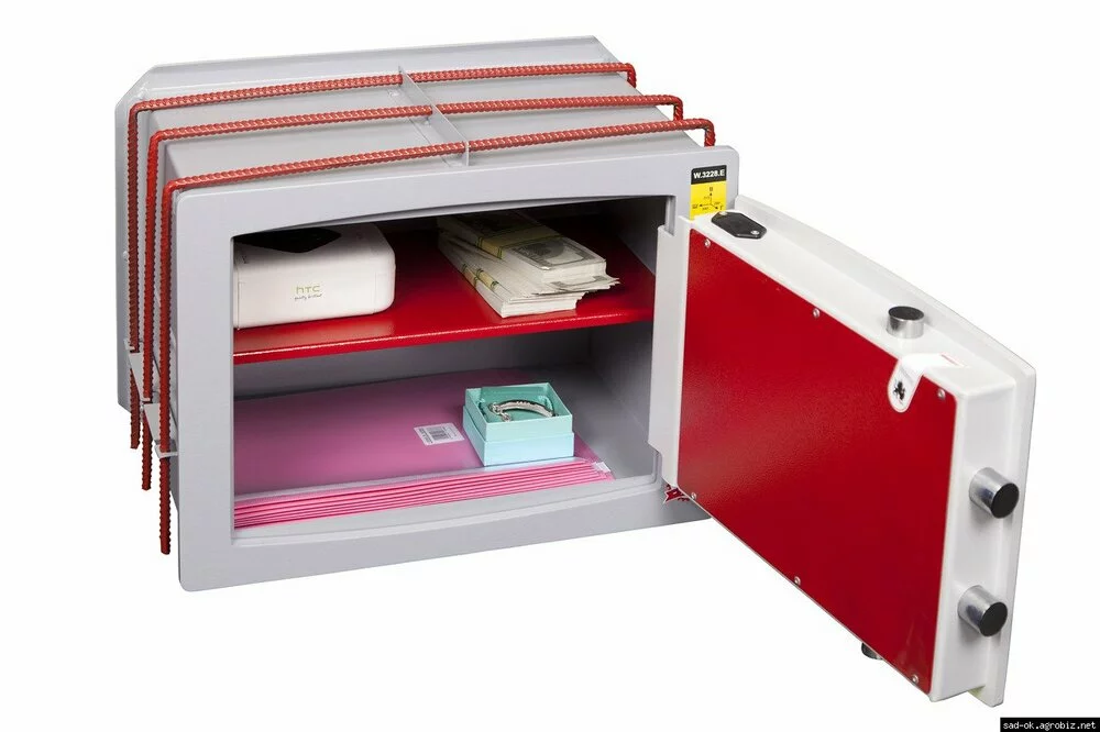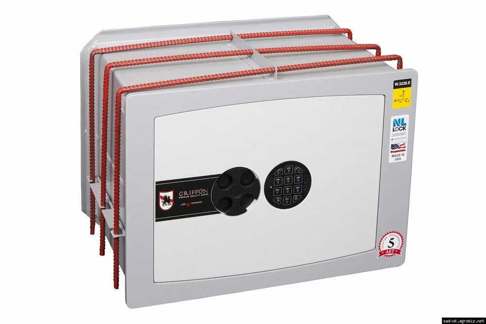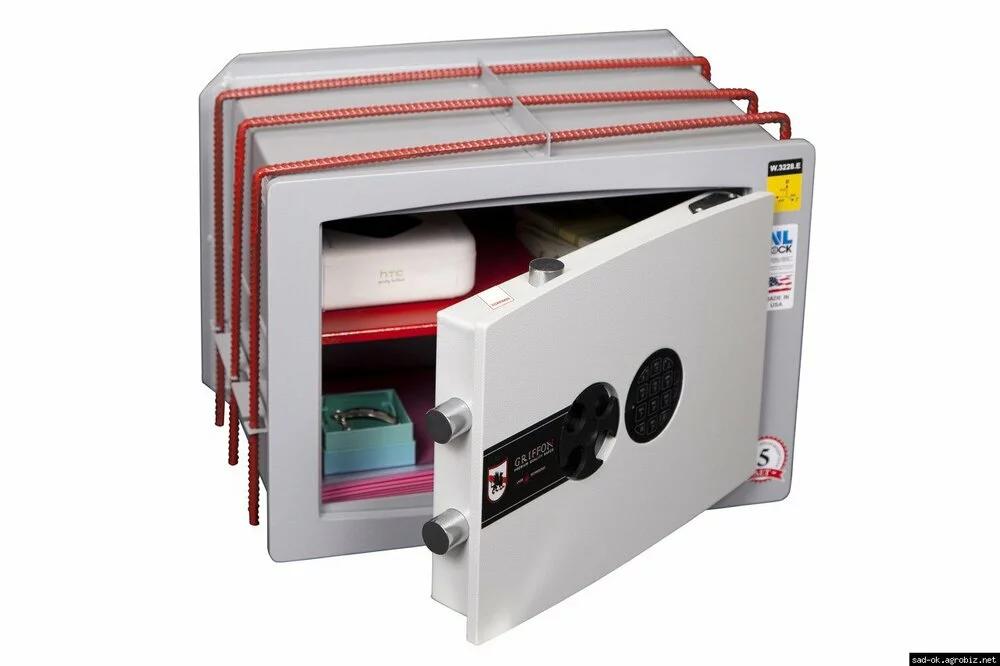 GRIFFON ? W.3228.K оснащен ключевым замок STUV (Германия) класса VDS A. В этом сейфе установлена непросверливаемая 12 миллиметровая пластина, которая надежно защищает замок от высверливания. Также в этом сейфе установлено перезапирающее устройство, которое срабатывает при попытке взлома или вскрытия электронного замка, тем самым надежно защищает содержимое сейфа.