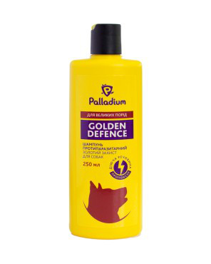 Шампунь від паразитів Palladium Golden Defence - інсектоакарицидний препарат, який призначений для знищення бліх, іксодових кліщів, вошей і волосоїдів, що паразитують на собаках.