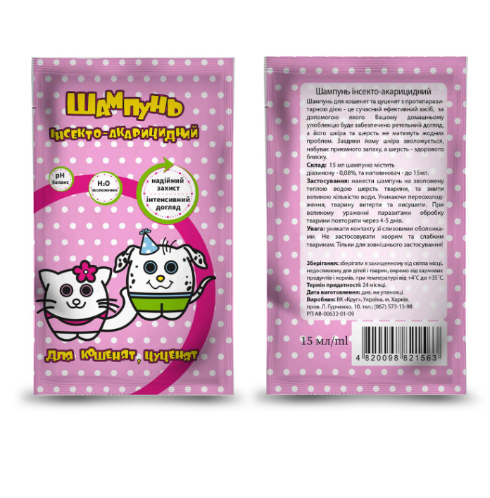 "Шампунь інсектоакарицидний для цуценят і кошенят", 15 мл (Круг)