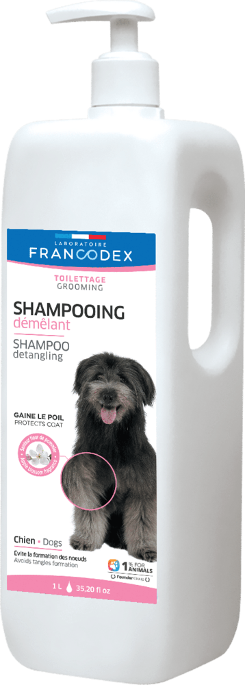 LABORATOIRE FRANCODEX 2 in 1 Conditioning Shampoo (Шампунь-кондиціонер 2в1 Лаборатуар Франкодекс) — Ідеальний комбінований засіб, який ефективно очищує та кондиціонує шкіру та шерсть вашого собаки, забезпечуючи свіжий аромат. Шампунь має ефективну формулу, яка одночасно зміцнює, очищує, робить розчісування шерсті легким і ніжним та надає пишного об’єму.