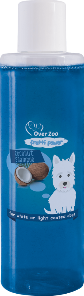 Over Zoo Shampoo Frutti Power Coconut - м'який фруктовий шампунь з приємним ароматом кокосу для собак зі світлою та білою шерстю. Містить екстракт кокосу, який освітлює шерсть, а також ефективно зволожує та зміцнює її.