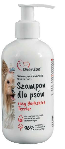 Over Zoo Shampoo Yorkshire Terrier Dogs - спеціально розроблений шампунь з протеїнами кашемірової шерсті та екстрактом календули для дорослих йоркширських тер'єрів. Натуральні компоненти шампуню забезпечують відмінне зволоження щерсті собак та полегшують її розчісування, допомагають запобігти появі ковтунів і електризації, роблять шерсть вихованця здоровою та доглянутою. Фруктові ефірні олії надають шампуню приємний аромат.