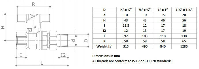 **Кульовий кран Fratelli Pettinaroli (американка) 1" з ручкою-метеликом (Італія)**