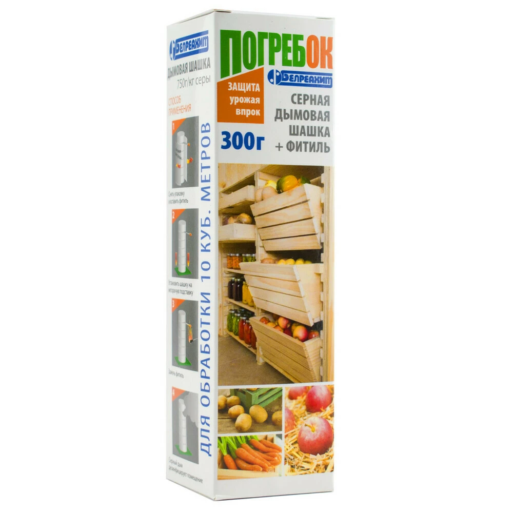 Ефективна сірчана шашка, застосовується для обробки парників, теплиць, підвалів та погребів з метою фумігаційної дезінфекції від шкідників запасів, грибкових та бактеріальних хвороб. При горінні сірчана шашка виділяє велику кількість сірчистого ангідриду та сірчисту кислоту, які випалюють і знищують всю органіку та теплокровних гризунів.