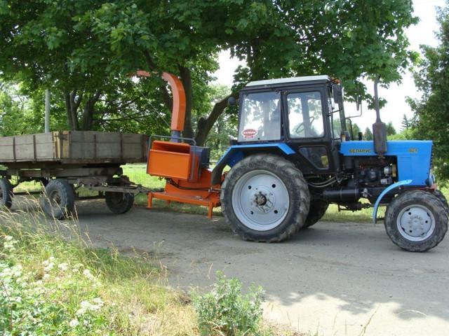 Отличие машин модели это способность измельчения древесины в прицеп не отсоединяя его от трактора.