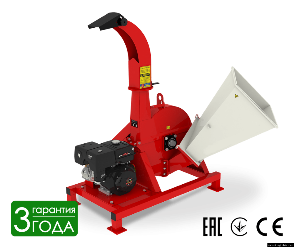 Щепорез МК-100БД оборудован бензиновым двигателем марки WEIMA мощностью 18 л.с. расход топлива которого составляет всего 800 гр/час. Данный двигатель является одним из самых качественных на территории Украины, сервисные центры находятся в каждой области. Двигатель защищен от перегрузок специальной фрикционной муфтой нашей разработки. На двигатель действует отдельная гарантия от производителя сроком на 12 мес.
