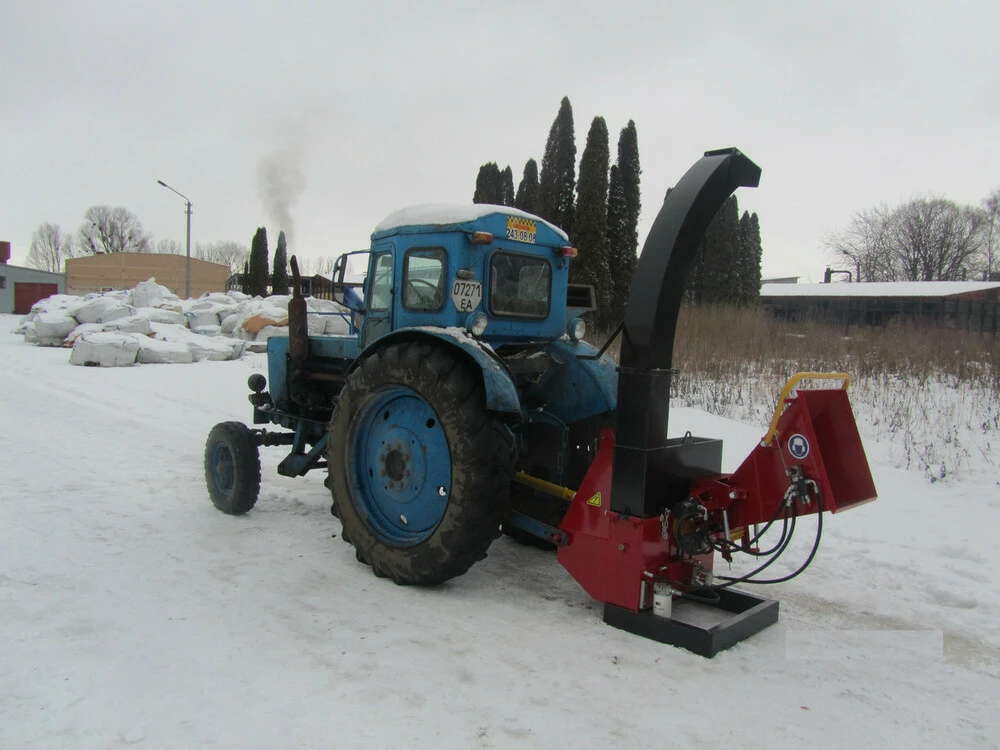 Рубительная машина РМ-160T монтируется как навесной агрегат и агрегатируется с тракторами МТЗ (Беларусь), ЮМЗ, Т-70, и другими аналогичного класса, с мощностью от 80 л.с., которые имеют вал отбора мощности трактора через карданную передачу.