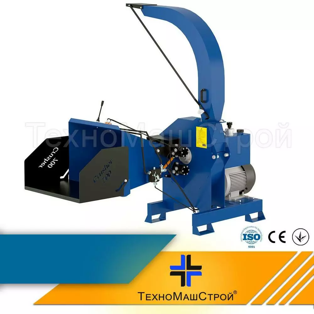 Щепоріз дискового типу "Сrusher-700" від компанії-виробника "ТехноМашСтрой" призначений для подрібнення відходів деревообробки, що характеризуються низькою собівартістю, на технологічну та паливну тріску. Застосовується рубальна машина на пилорамах, лісозаготівельних підприємствах, деревообробних підприємствах, целюлозно-паперових комбінатах, а також у комунальних службах. Отримана тріска може використовуватися для виробництва ДСП, паливних брикетів, пелет, опалення в котлах і т.д. Актуальність наявності цього обладнання у будь-якому сільськогосподарському підприємстві дуже велика, оскільки деревні відходи можуть займати багато місця, не приносити жодної користі або навіть вимагають витрати на утилізацію. Але якщо купити щепоріз «Сrusher – 700» Ви вирішите відразу кілька завдань одночасно. Продуктивність обладнання - до 10 м3/год (залежить від породи і вологості дерева). Максимальний діаметр фракції, що переробляється, до 160 мм. (Завантажувальне вікно шириною 210мм та висотою 160мм). Також подрібнювач може міняти напрямок потоку тріски на 360 градусів. Подрібнювач деревини може укомплектуватися різними типами приводів, такими як: вал відбору потужності від трактора (ВВП) або електродвигуном потужністю 22 кВт. Подрібнення деревини відбувається за допомогою ножів (виготовлені із сталі 9ХС - сталь інструментальна легована), що пройшли термообробку. Щепоріз обладнаний гідравлічною системою затяжних валів, що значно полегшує роботу при переробці деревини різного діаметру та довжини.
