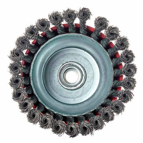 1. **Призначення:** Ця щітка-чашка призначена для обробки дерева, зняття фарби, шліфування металу та зняття іржі. Вона ефективно справляється з великими ділянками поверхні, зварювальними швами та листовим металом.