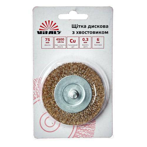 Характеристики на Щітка дискова з хвостовиком Vitals гофрована латунована 75 мм, 0,3 мм
