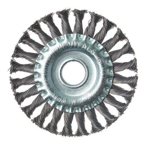 Щітка дискова Vitals з плетеної сталевої проволоки є відмінним інструментом для грубої обробки поверхонь та виконання важких завдань в області ремонту та побуту.