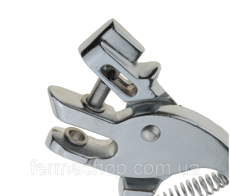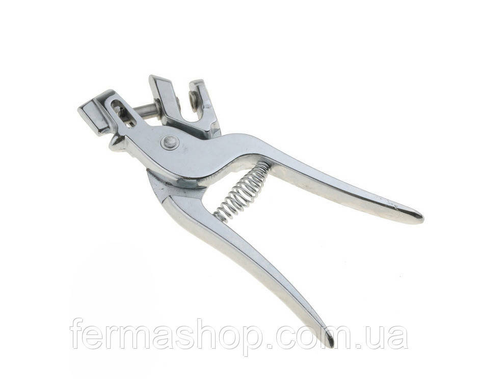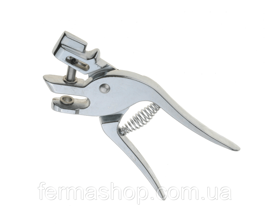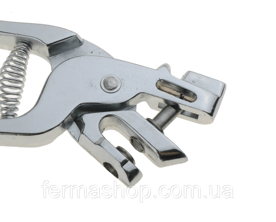 Один из способов мечения молодняка свиней - это создания выщипов на ушах. Каждый выщип показывает определенное число. Здесь представлены специальные щипцы с круглой формой.