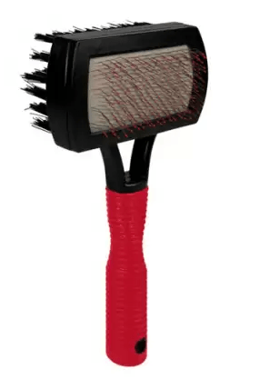 Масажна пластмасова щітка відмінної якості. На кінчиках сталевих щетинок є кульки, які запобігають травмуванню шкіри. Для собак із середньою і довгою шерстю, а також для гладкошерстих домашніх улюбленців. Свиняча щетина зі зворотного боку щітки прекрасно полірує шерсть, згладжує посічені або травмовані ділянки волоса, які можуть бути навіть не видимі оку. У результаті Ви отримуєте сяючу шерсть. Розмір щітки - 17х10см.