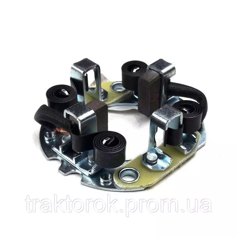 Тримач з щітками (Щіткотримач, щітковий вузол) для посилених стартерів 12В. Щіткотримач - елемент щітково-колекторного вузла електричного стартера, призначений для кріплення і правильного розташування електрощіток стартера. Використовується при ремонті стартерів.