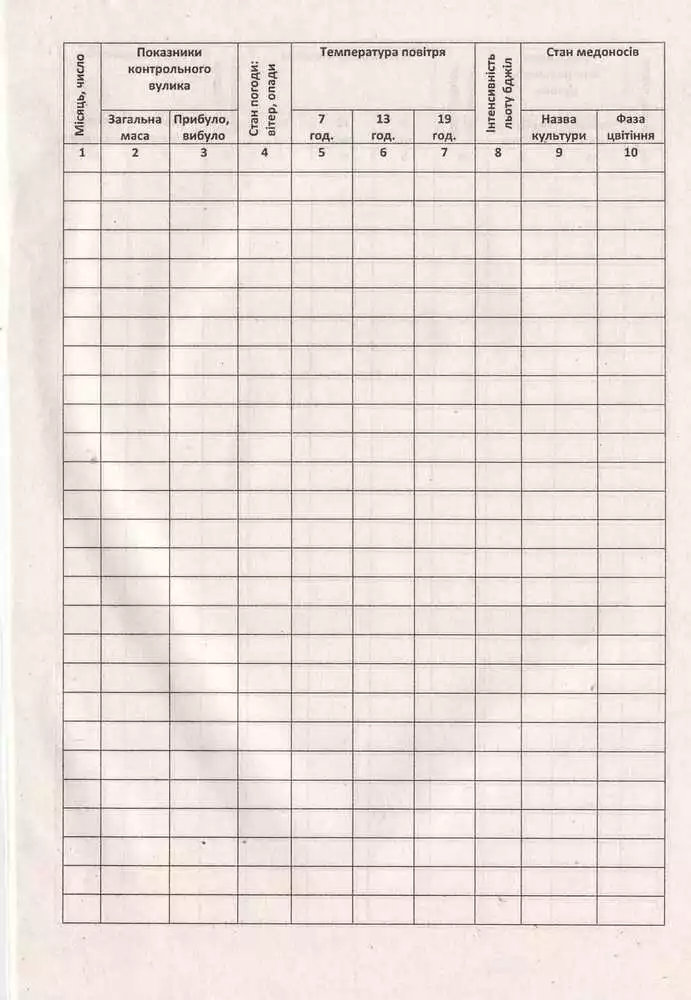 Щоденник контрольного вулика.