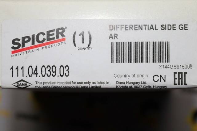 3. Гарантія виробника – на всі запчастини DANA SPICER поширюється офіційна гарантія, що забезпечує захист від підробок.