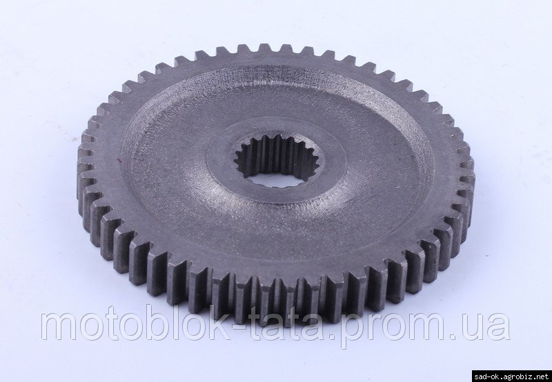 Шестерня привода вторичного вала 168F/170F подходит на ременной редуктор мотоблоков, культиваторов и др., мощностью 6,5/7 л.с. с воздушным охлаждением. Размеры: Z-52 ?92,5mm. Внутренний ?18mm Z-19. H-12mm. Вес: 412 гр.