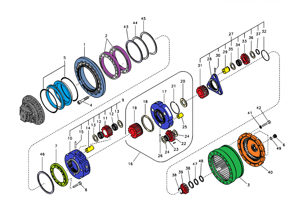16.   [1] Планетарна шестерня (водило) редуктора походу Volvo EC240B NLC EC210