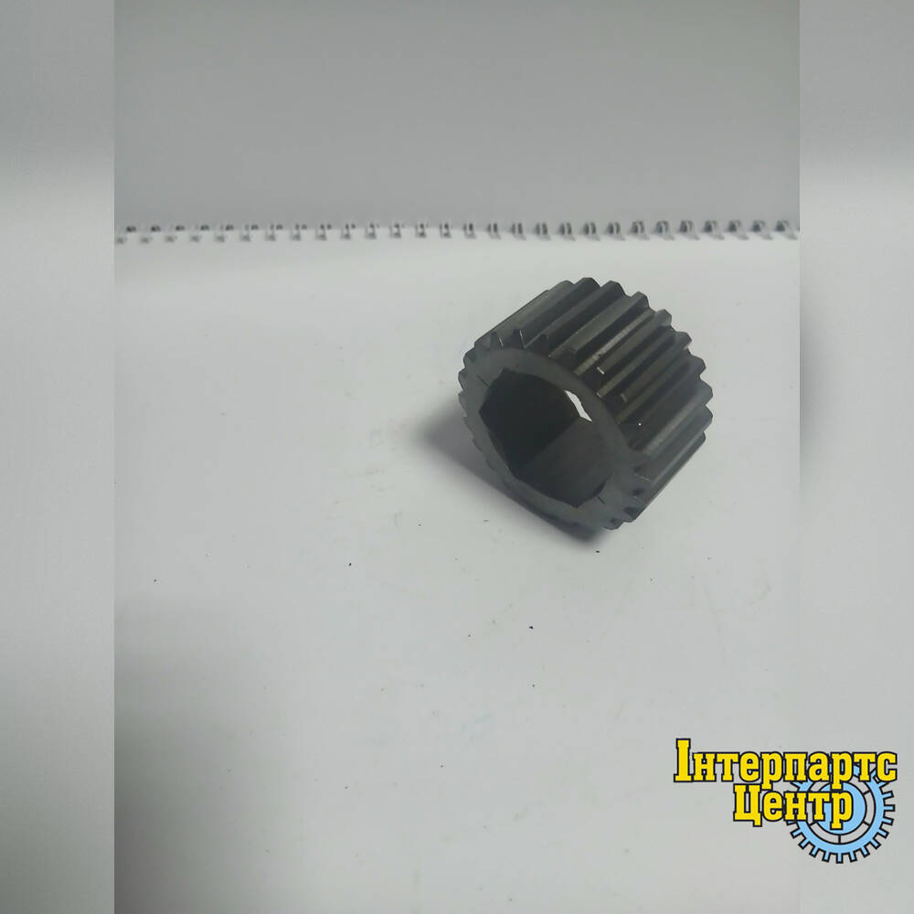 Сталева деталь складної просторової форми у вигляді циліндричної шестерні з центральним шестигранним отвором. Деталь термічно оброблена для підвищення міцності та зносостійкості.