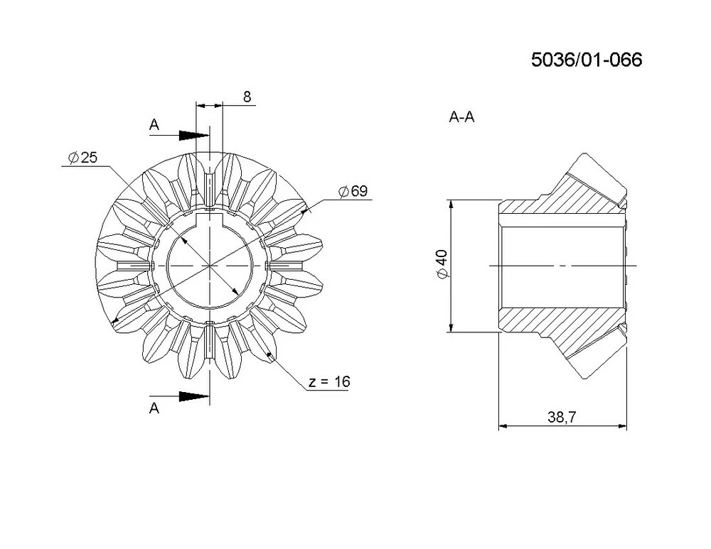 Шестерня Z-16 коническая малая польской роторной косилки Z-069 Z-169 Z-173