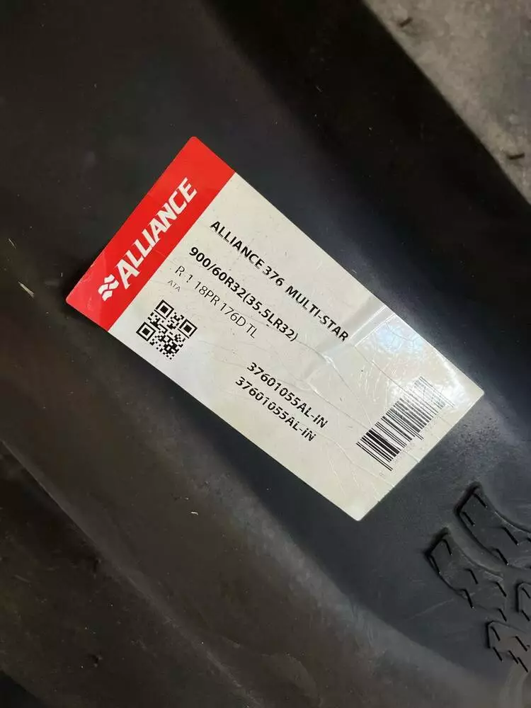 Шина 900/60R32 Alliance 376 (176D, TL) STEEL BELTED — це високоякісна радіальна сільськогосподарська шина, розроблена спеціально для зернозбиральних комбайнів, тракторів великої потужності, перевантажувачів зерна та причепів.Шина 900/60R32 Alliance 376 (176D, TL) STEEL BELTED — це високоякісна радіальна сільськогосподарська шина, розроблена спеціально для зернозбиральних комбайнів, тракторів великої потужності, перевантажувачів зерна та причепів.