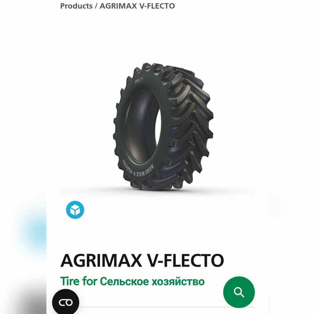 Шини AGRIMAX V-FLECTO — це відповідь компанії BKT про потребу в технологіях і характеристиках для високопотужних тракторів. Ці шини ідеально підходять для обробки грунтів і вантажоперевезень за рахунок зниженого ущільнення грунтів і здатності до самоочищення. Завдяки ексклюзивній технології VF шини AGRIMAX V-FLECTO можуть забезпечити більші навантаження при низькому подачі повітря в них у порівнянні зі стандартними шинами та шинами з технологією IF. Крім того, вони добре зарекомендовали себе при русі на високій швидкості. Ці шини також характеризуються опцією узкого обода, що дозволяє встановити їх на стандартні ободки. Компанія BKT розробила ці шини з оптимізованою геометриєю для підвищення комфорту руху як у полі, так і на дорозі з одночасним зменшенням витрати палива.