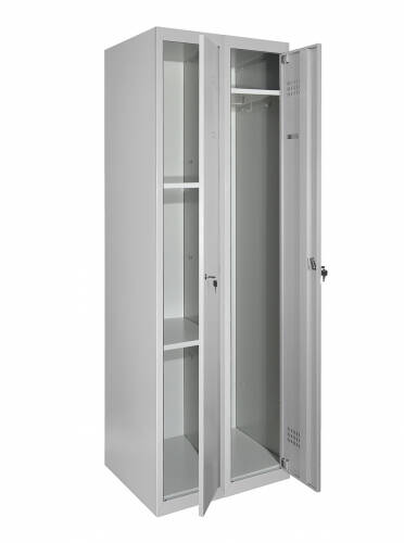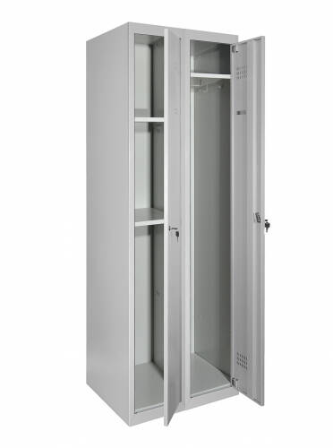 Матеріал: Метал, Покриття: Полімерно-порошкове, Конструкція: Збірно-розбірна, Товщина металу 0.5 мм, Тип шафи: Господарський (ШГМ), Кількість секцій: 2, Кількість дверей у секції: 1 Ліва секція -, Кількість відділень: 3 з можливістю регулювання висоти полиць