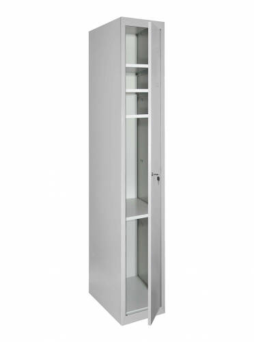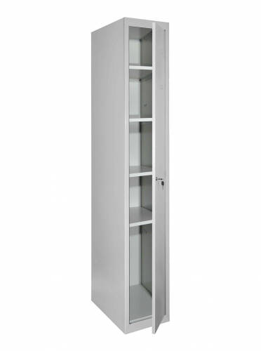 Матеріал: Метал, Покриття: Полімерно-порошкове, Конструкція: Збірно-розбірна, Товщина металу 0.5 мм, Тип шафи: Господарський (ШГМ), Кількість секцій: 1, Кількість дверей у секції: 1, Кількість відділень: 5 з можливістю регулювання висоти полиць