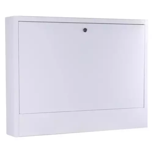 Шафа зовнішня (накладна) для колекторів теплої підлоги, систем опалення та водопостачання призначена для зручного розміщення колекторів та приладів, що визначають витрату тепла і води в системі. Вона може бути встановлена на стіні або підлозі приміщення.