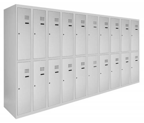 Виготовлені з високоякісної холоднокатаної тонколистової сталі, шафи мають спеціальне антикорозійне покриття, яке наноситься у порошковій формі. Це забезпечує не лише естетичний зовнішній вигляд, але й забезпечує захист від корозії та інших видів пошкоджень. На додаток, світло-сірий колір зварених лав узгоджується з відтінком металевих шаф RAL 7035, створюючи враження єдності та стилю всього приміщення.