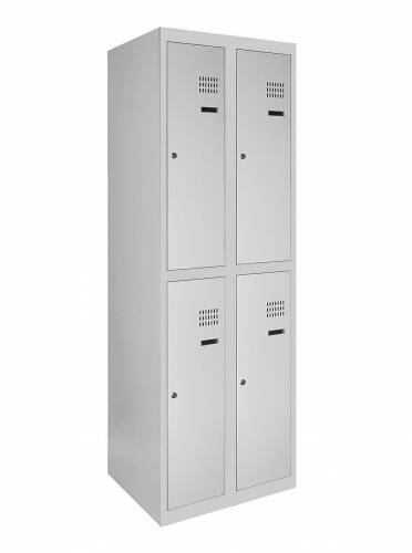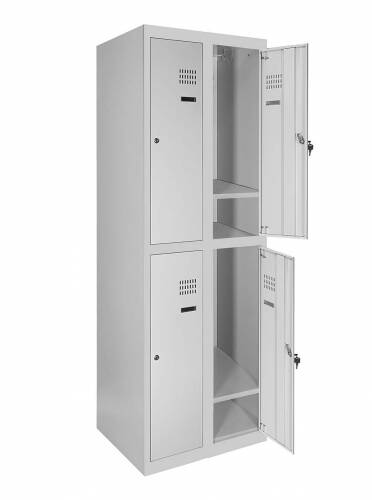 Кожна секція шафи обладнана 4 гачками для легкого підвішування одягу, перекладеною для вішаків, а також поличкою для зручного розміщення речей. Крім того, кожна секція оснащена врізним механічним замком типу прапорця з двома ключами для забезпечення максимальної безпеки зберігання. Таким чином, шафи одягові металеві є надійним та функціональним рішенням для організації зберігання одягу у будь-якому приміщенні.
