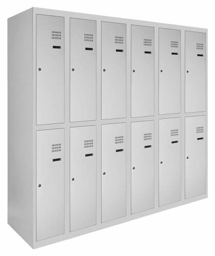 Кожна секція шафи обладнана 4 гачками для легкого підвішування одягу, перекладеною для вішаків, а також поличкою для зручного розміщення речей. Крім того, кожна секція оснащена врізним механічним замком типу прапорця з двома ключами для забезпечення максимальної безпеки зберігання. Таким чином, шафи одягові металеві є надійним та функціональним рішенням для організації зберігання одягу у будь-якому приміщенні.