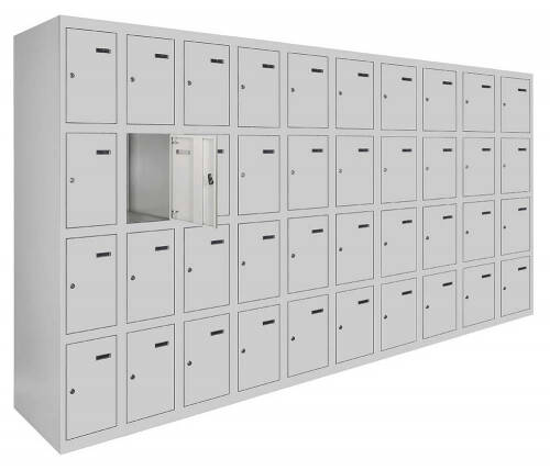 Універсальність конструкції дозволяє зручно складувати шафи в будь-якому приміщенні, а можливість їхнього з'єднання у вигляді блоків робить їх ідеальним варіантом для організації простору будь-якого розміру. Кожна секція шафи оснащена врізним механічним замком з двома ключами для забезпечення надійності та конфіденційності зберігання.