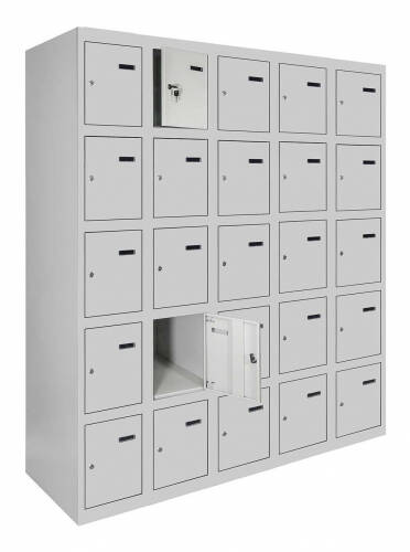 Універсальність конструкції дозволяє зручно складувати шафи в будь-якому приміщенні, а можливість їхнього з'єднання у вигляді блоків робить їх ідеальним варіантом для організації простору будь-якого розміру. Кожна секція шафи оснащена врізним механічним замком з двома ключами для забезпечення надійності та конфіденційності зберігання.