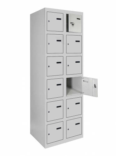 Універсальність конструкції дозволяє зручно складувати шафи в будь-якому приміщенні, а можливість їхнього з'єднання у вигляді блоків робить їх ідеальним варіантом для організації простору будь-якого розміру. Кожна секція шафи оснащена врізним механічним замком з двома ключами для забезпечення надійності та конфіденційності зберігання.