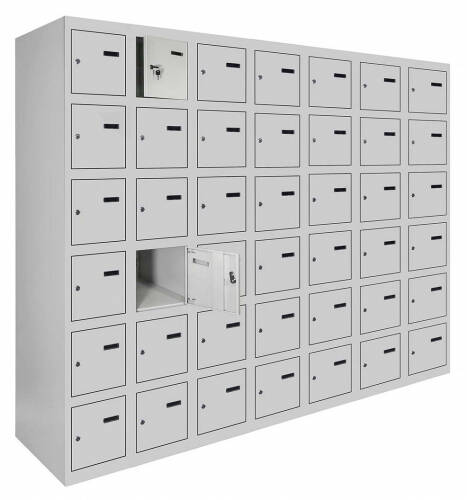 Універсальність конструкції дозволяє зручно складувати шафи в будь-якому приміщенні, а можливість їхнього з'єднання у вигляді блоків робить їх ідеальним варіантом для організації простору будь-якого розміру. Кожна секція шафи оснащена врізним механічним замком з двома ключами для забезпечення надійності та конфіденційності зберігання.