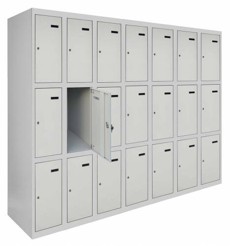 Шафи мають модульну конструкцію, що дозволяє їхнє з'єднання між собою у вигляді блоків. Такий блок може включати будь-яку кількість комірок. Кожна секція обладнана врізним механічним замком типу "прапорець" із двома ключами, що забезпечує надійність зберігання особистих речей.