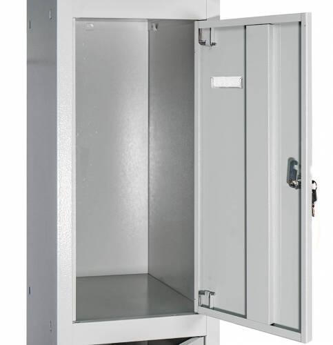 Виготовлені з високоякісної холоднокатаної тонколистової сталі, шафи проходять антикорозійну обробку з нанесенням порошкового полімерного покриття. Це надає їм не лише привабливий зовнішній вигляд, а й підвищує стійкість до зношування. Окрім того, шафи поставляються у розібраному вигляді, що зменшує ризики пошкодження під час транспортування та скорочує витрати на доставку. Для їх складання не потрібний спеціальний інструмент, оскільки вони мають спеціальні зачепи, що дозволяють зібрати конструкцію без особливих зусиль.