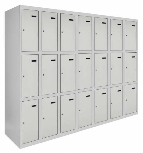 Коміркові металеві шафи, також відомі як шафи для зберігання особистих речей або одягу (ШКМ), представляють собою зручний та функціональний елемент, що широко застосовується у торгових, адміністративних, навчальних, спортивних, медичних та побутових приміщеннях. Основні переваги цих шаф включають простоту в експлуатації, екологічність, довговічність та мобільність.