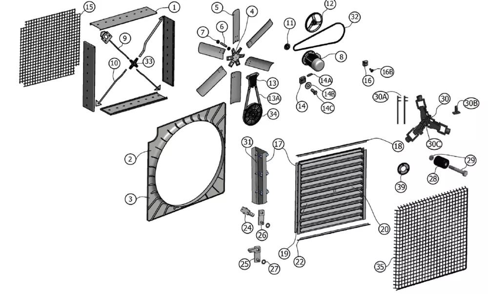 Шкив отвечает за передачу привода двигателя на ступицу. На шкиве установлен клиновой ремень, на другой стороне вентилятора находится небольшой шкив, изделие которое изготовлено из прочного пластика - моплена